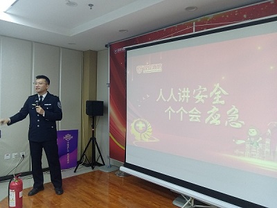 在培训中,张锐教官结合近年来发生的火灾案例,图文并茂、视频播放、现场演示等形式,绘声绘色的讲述了消防的知识,强调火灾重在预防,要人人讲安全、会应急。同时结合家庭发生火灾的案例,强调家庭预防火灾,尤其是插线板引起的火灾。教会大家掌握消防知识,必备灭火工具,学会灭火器材的使用方法与操作步骤的迫切性和重要性。张教官还对灭火器的分类及使用进行了重点讲解。